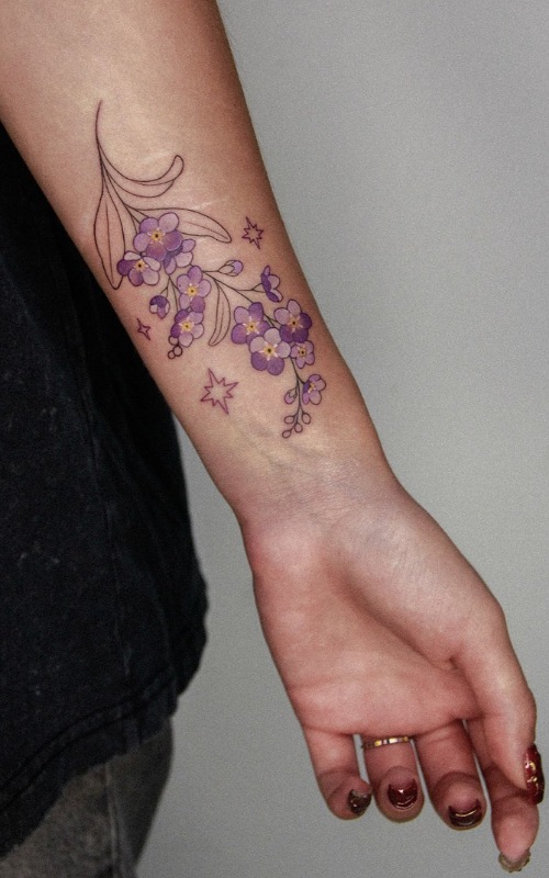 Fill your life with color and get a beautiful purple ink tattoo if you like bold and whimsical body art. Scroll down to find yours now.