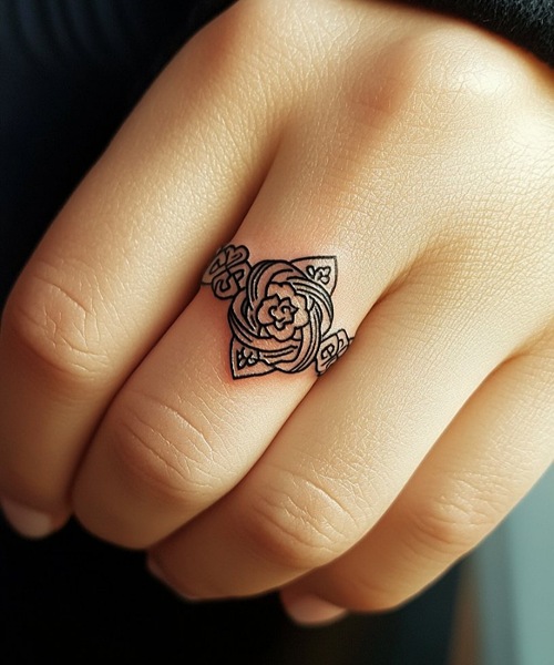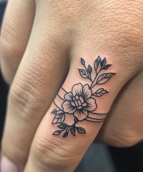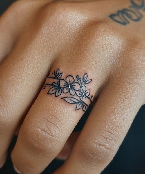 You are going to love the floral design adorned on this ring band. Check out these spring flower tattoo designs, too.