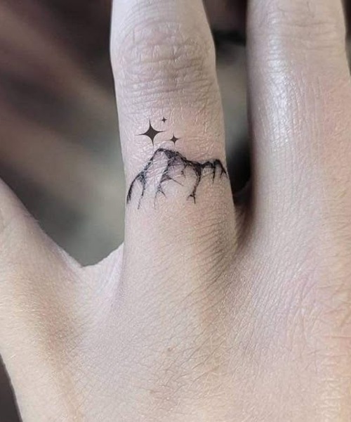People who love adventures and go all out can get this miniature mountain art inked on their finger.