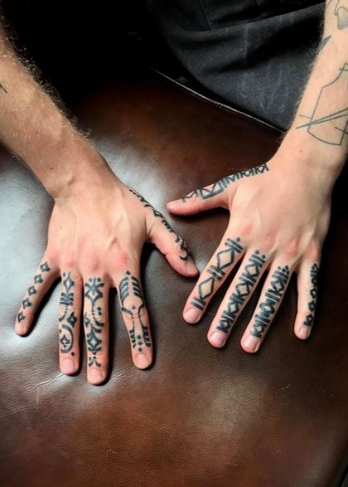 Let’s start with a bold one on the hand. It uses black ink to create a pattern you won’t be able to look away from.