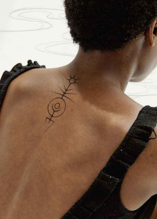 Here’s a minimalistic tattoo for you. It is situated right on your neck and looks aesthetic.
