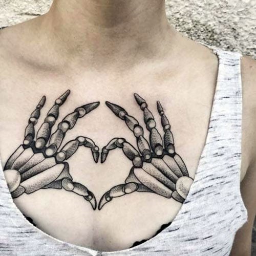There is a good reason to go ahead with this skeletal hand forming a heart on the chest. It’s beautiful, aesthetic, and feminine.