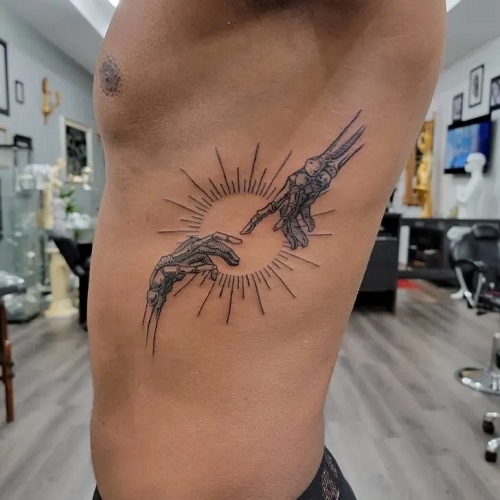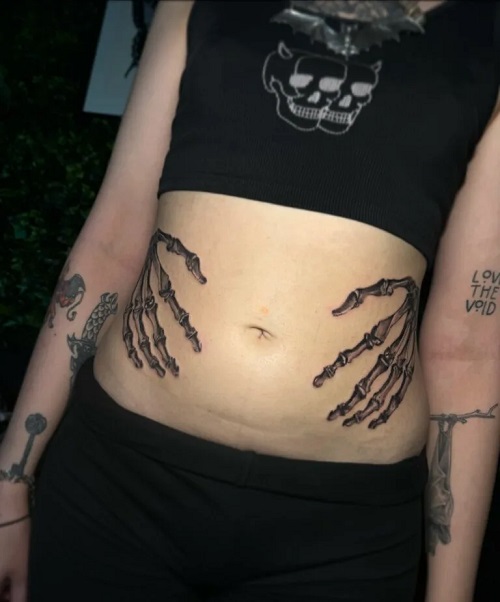 4. Beautiful Side-Body Skeletal Hand Tattoo