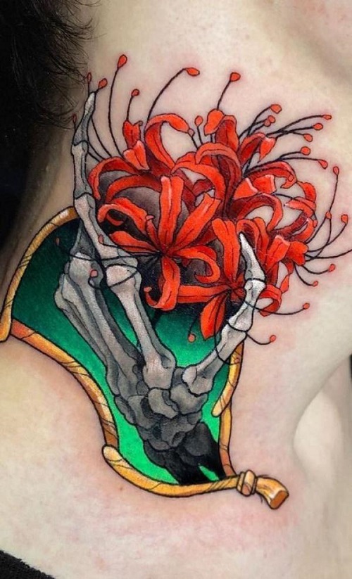 Let’s end with this hauntingly beautiful spider lily tattoo, a symbol of loss and invisible ties that never break.