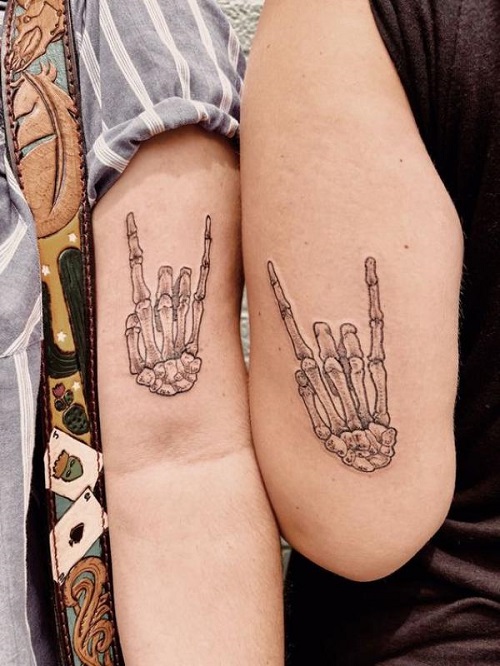 You could get this matching tattoo that makes it look like the skeletal hands are holding your waist. Cool, isn’t it?