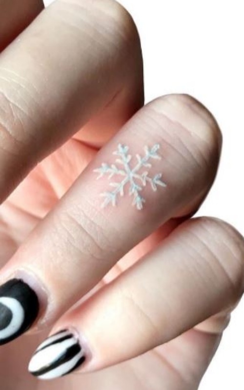 Another ink idea featuring a beautiful snowflake done in white ink with a symmetrical and neat shape. Isn’t it pretty?