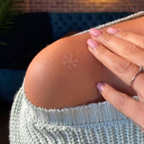 Decorate your collarbones with this trio of white ink snowflakes. It copies the style of a real one.