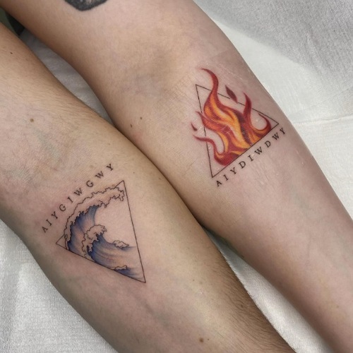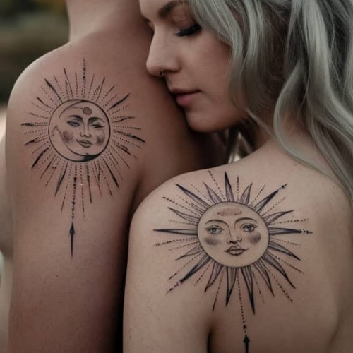 Now, this is one of our many guides dedicated to matching tattoos. If you wish to explore more, then make sure to check out our other guides to meaningful matching tattoos for couples in love, matching couple tattoos for everlasting love, and matching LGBT couple tattoos.