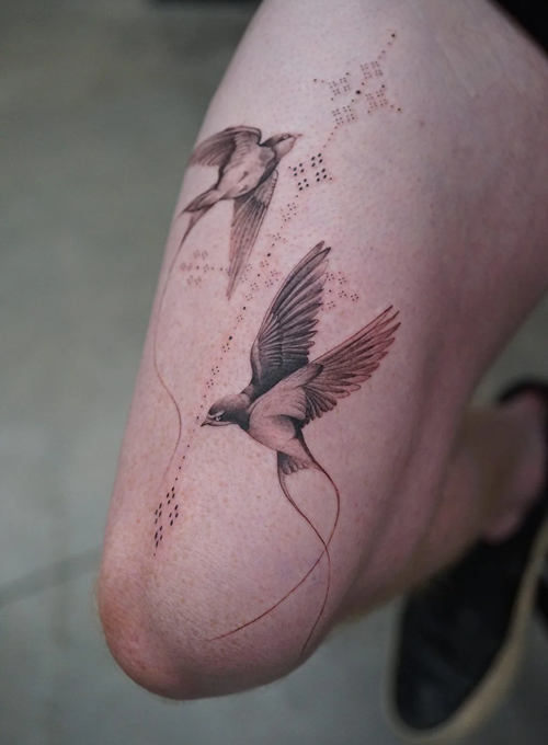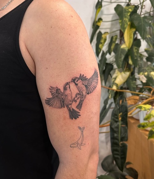 Call your partner and get this sparrow in love tattoo. It will be a great matching tattoo idea for those who have promised forever.
