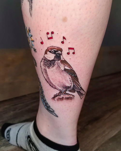 Get this singing sparrow done on your leg and make every walk fun and joyful. Here are more leg tattoo options for you.