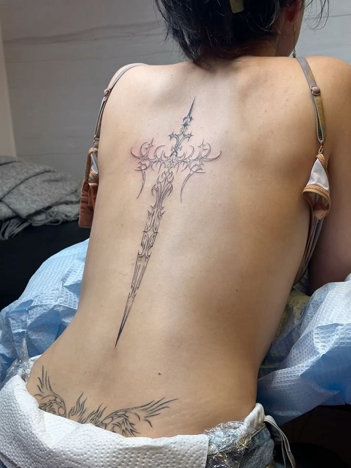 Go daring and chic with these attractive eyepieces, popularly known as spine tattoos for women. Get ready to show off!