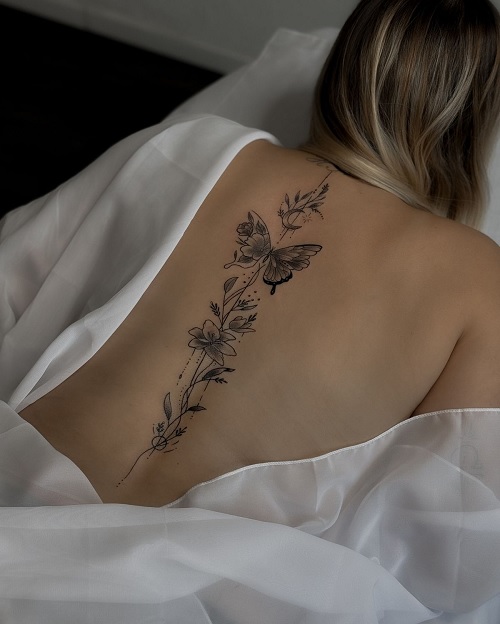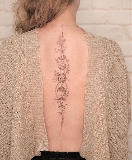 Spine tattoos for women have always stayed in trend for their chic look and varied designs. You can go for minimalist ones or even large, intricate ones. Each design is different and unique, and is here to leave an impression. Scroll down and be prepared to be charmed.