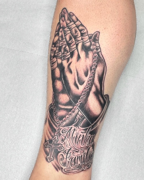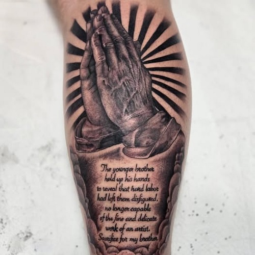The praying hands and the prayer might be one of the best ways to get a hand tattoo done. Did you like it?