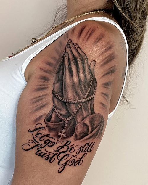 Praying hand tattoos symbolize the Holy Spirit, peace, love, hope, and purity. So, why not get this one done if you are on a healing journey?