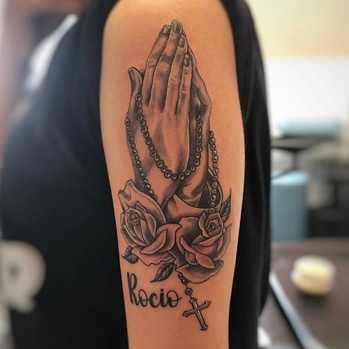 Look at this excellent rose flower adorned on the praying hand ink. It’s so beautiful and aesthetic!