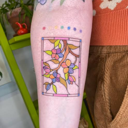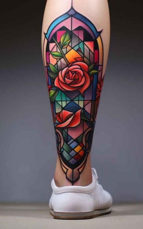 Quiet beauty has always been a popular tattoo trend, and what’s better than a beautiful stained glass tattoo design to follow this trend? It creates a look that blends intricate lines with glowing colors to give it an original look and create a piece that feels warm and personal.