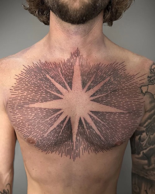 Go ahead with a chest tattoo idea done with intricate details. It symbolizes ambition and hope.