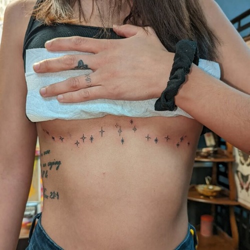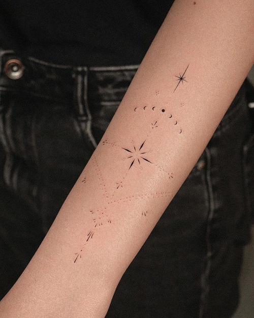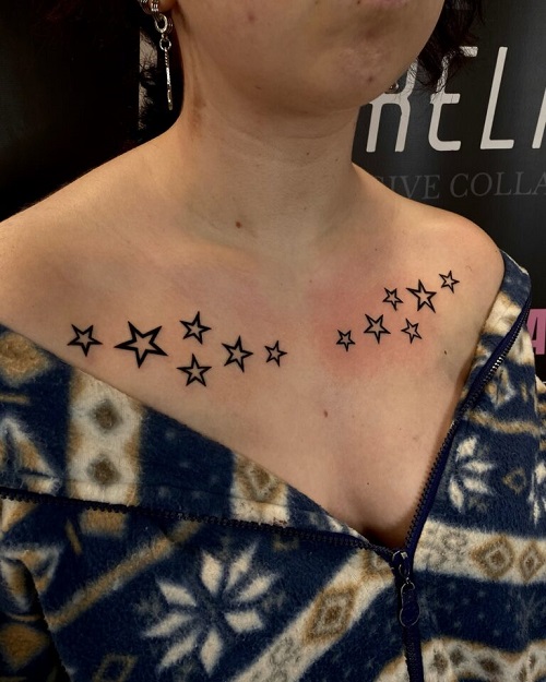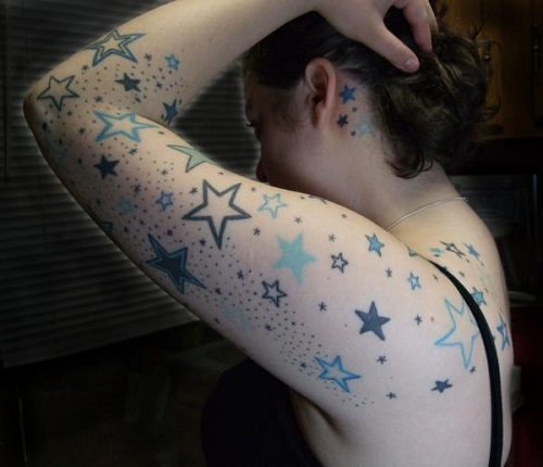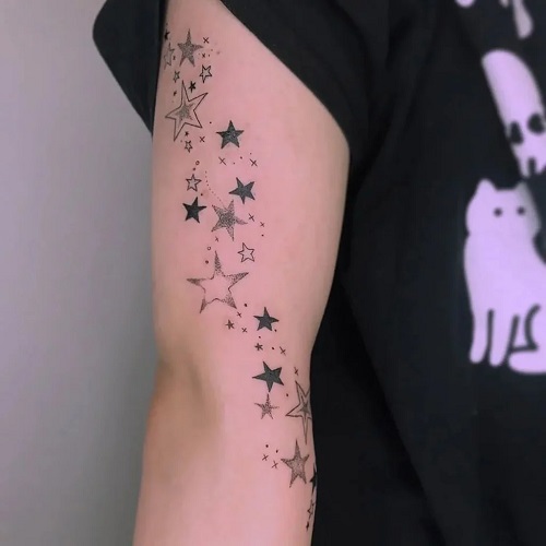 Have a look at this clean, artistic, and elegant tattoo idea. It looks like it’s raining stars down your sleeve.