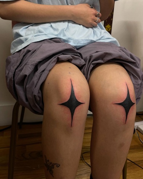 Go bold with this matching knee tattoo for a nice, eye-catching look. Watch people turn around to look at it again every time you pass by.