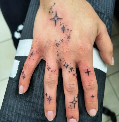 Why not try a basic body art that looks like your hand is covered in stars? Simply the best aesthetic hand tattoo.