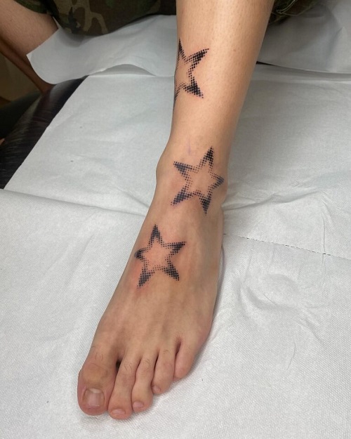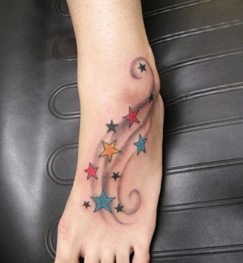 If you’re looking for a stylish tattoo idea, this is perfect for you. The feet are covered in colorful stars, creating a beautiful effect.