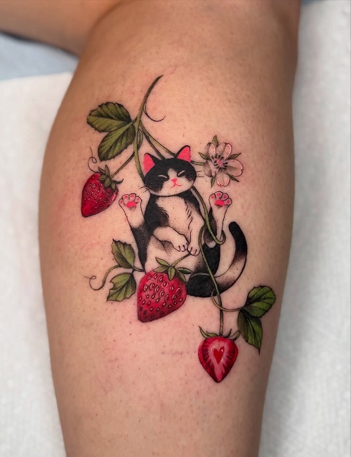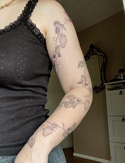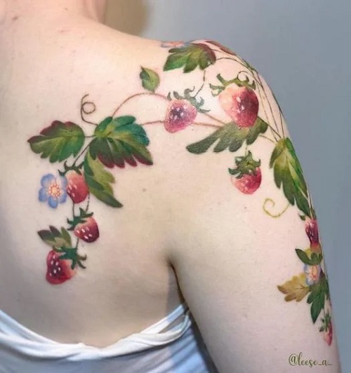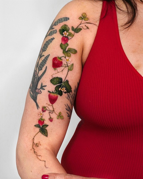 Have you ever wondered about a design that is colorful yet also so beautiful that you cannot stop looking at it? If yes, then these strawberry vine tattoo designs are exactly what you need. So, start scrolling and see which one you are ready to imprint on your skin.