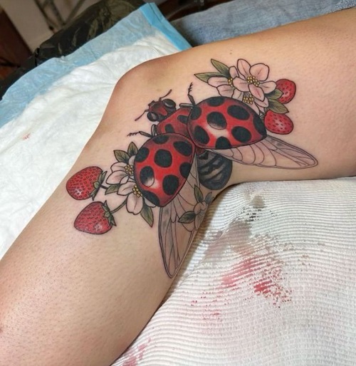Add a large ladybug to your strawberry plant and make it even more adorable. Make sure to check out these ladybug tattoos, too.