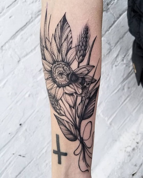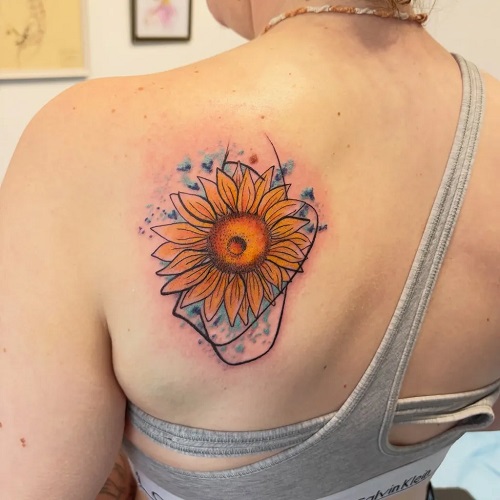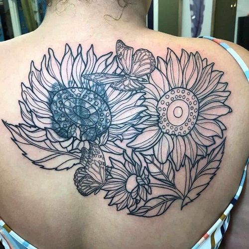 Don’t leave your back plain; let the sunflowers add colors to it with this stylish tattoo idea.