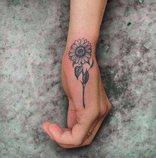 Nothing looks better than a small, cute flower tattoo on your hand. And this might be one of the best out there.