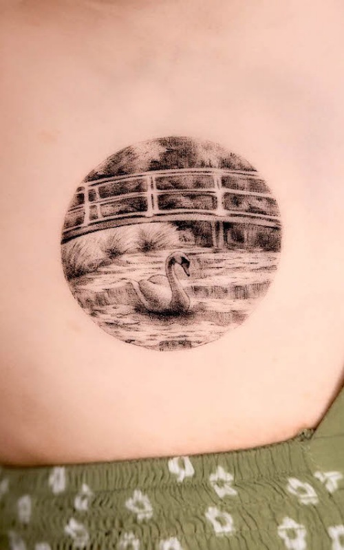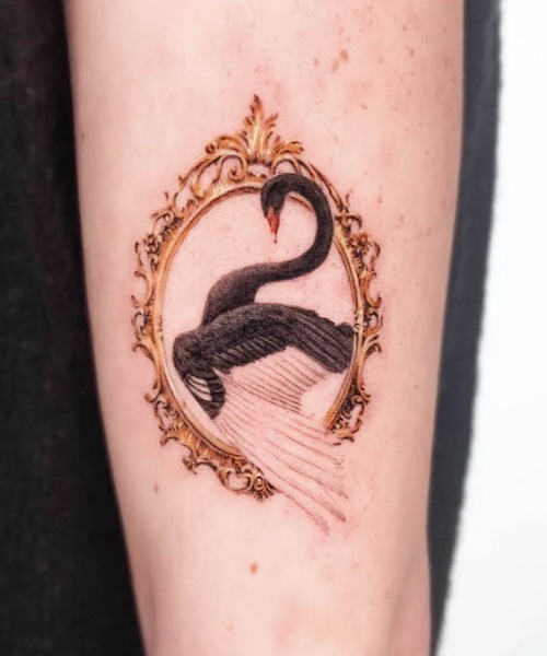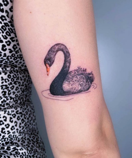 A swan tattoo on any part of your body looks feminine, and the black-colored water representation makes it extra presentable. Don’t you think?