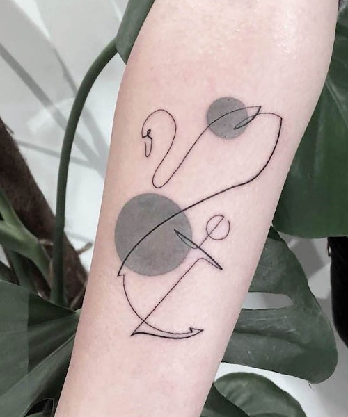 Combine an anchor with a swan in this fine-line design to create a symbolic tattoo that represents strength, stability, hope, and majestic grace.