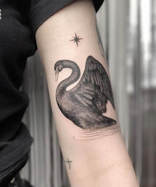 Getting a swan done like this symbolizes beauty and grace. Besides, this tattoo also looks visually appealing.