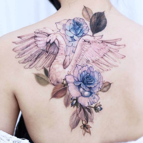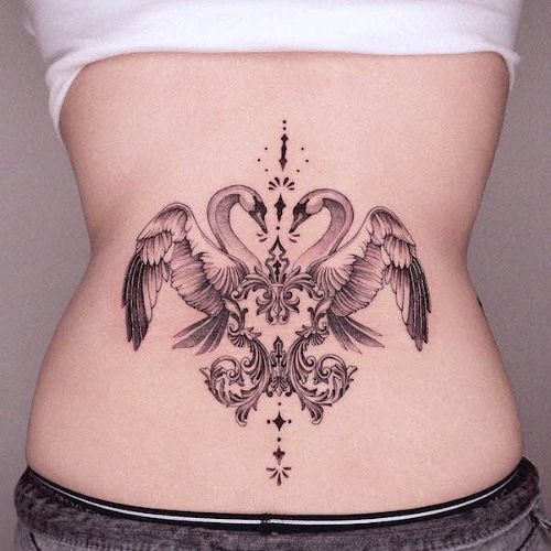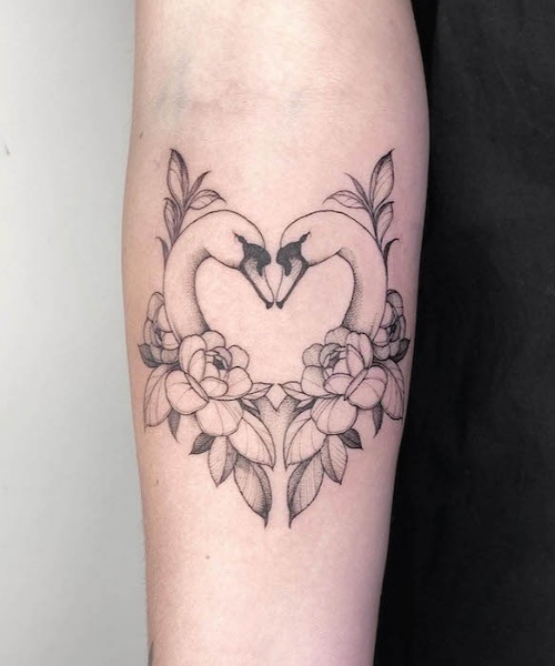 Let’s pair up your favorite flower with this lovely swan tattoo inspiration, forming a heart, and make a remarkable statement.