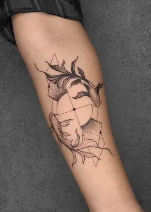Koi fish are associated with good luck, transformation, and perseverance. This circular arrangement is similar to the yin-and-yang symbol, a great choice if you’re looking for meaningful sketch tattoos!