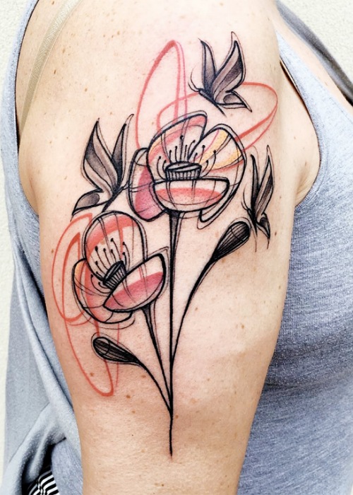 Floral and linework designs in this stunning tattoo are hard to ignore. It’s feminine, soft, and pretty. Did you like it?