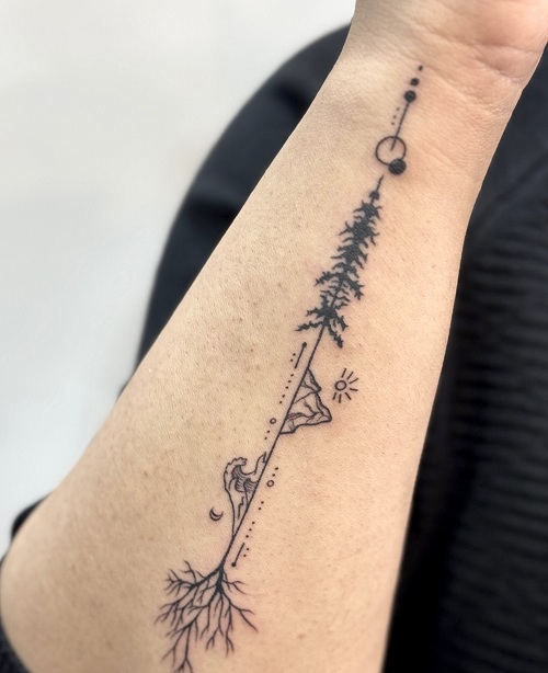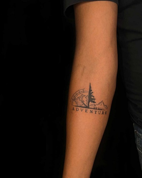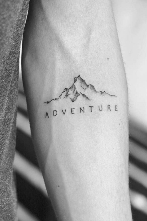 Here’s another minimalist forearm piece that spells “ADVENTURE” against a nature backdrop.