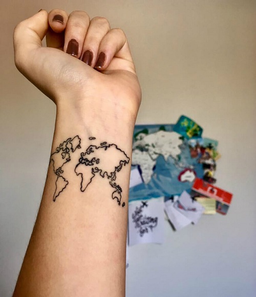 Get the world map inked on your wrist and keep travelling the world. Isn’t it the perfect tattoo to show your goal?