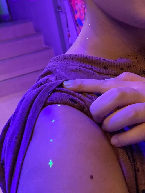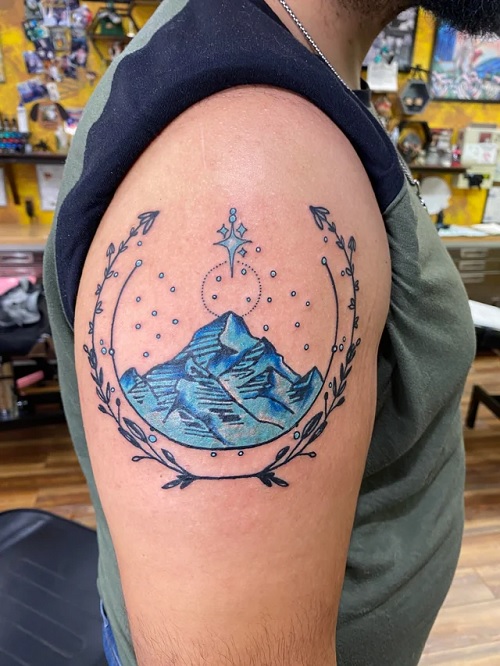 Here is a lovely idea for tiny shoulder tattoos. It has little dots and a single star that completes the design. See more such tiny shoulder inks right here!