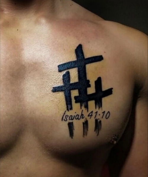 You can also go ahead and get one on your chest like this, which symbolizes finding strength and overcoming your fear through faith.