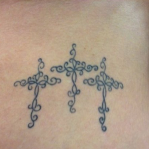 You wouldn’t want to miss out on this cross tattoo. Its curves make you stand out from the crowd.