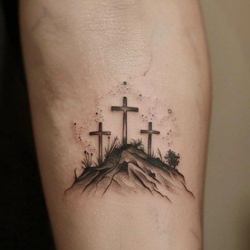 Get inspired for your next tattoo with this deeply symbolic three-crosses tattoo collection. A symbol of faith, sacrifice, and redemption.