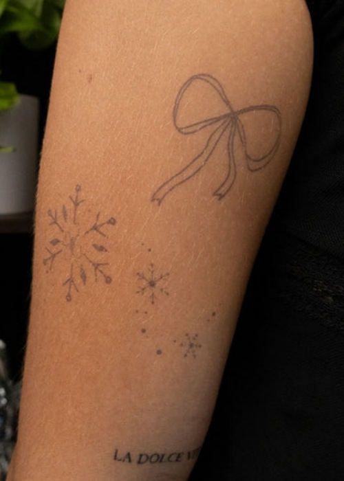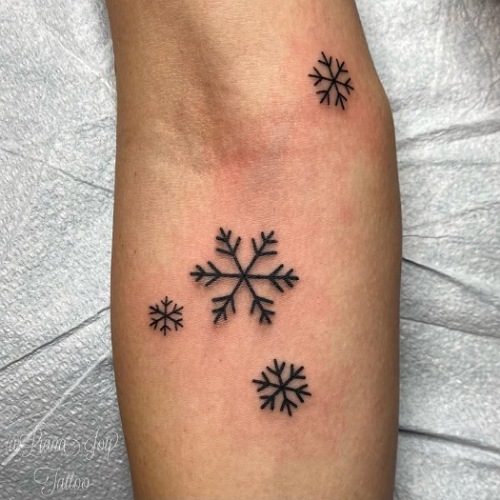 Here’s a minimalistic snowflake tattoo for you. Pair it with a ribbon just as shown in the image and complete the design.