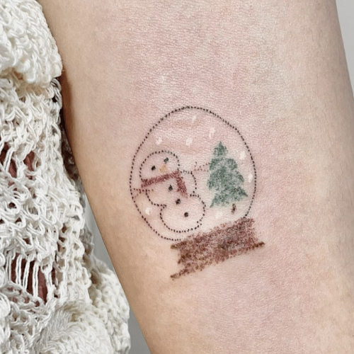 Simply a globe tattoo done with a Christmas tree and a snowman inside. What do you think? Did it catch your eye?