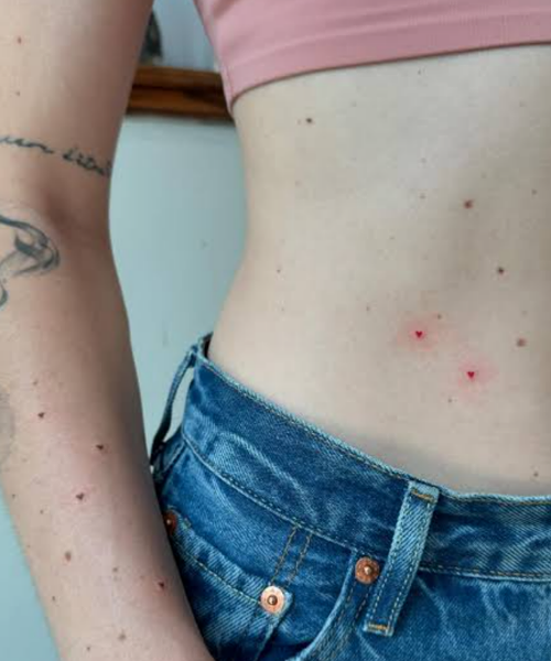 Here is another heart freckle tattoo idea across your tummy and arm. What do you think of this one?