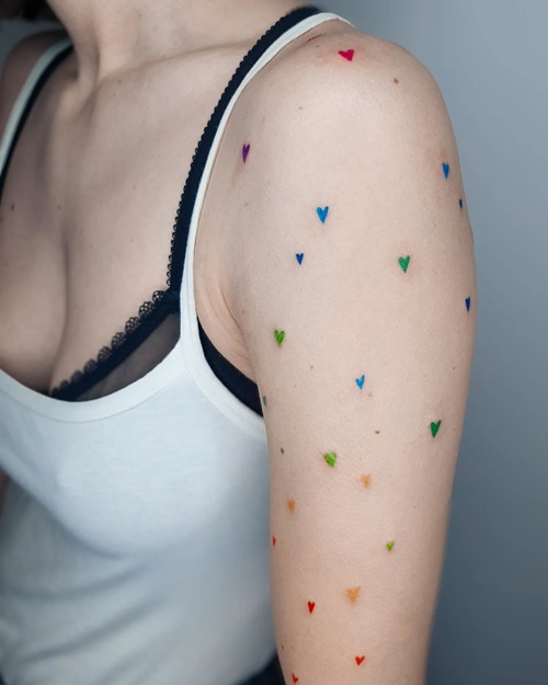 Hearts showering down your shoulder creates a minimal upper-sleeve look. Will you go ahead with this one?