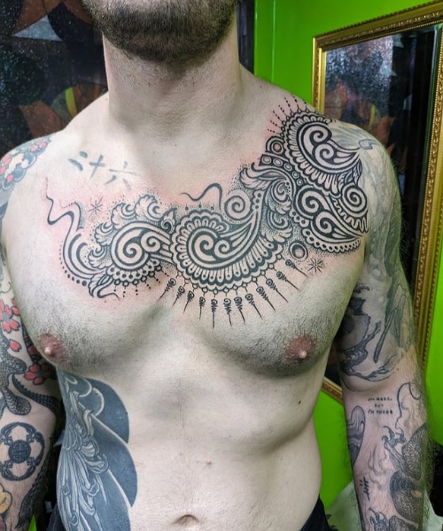 Get a flattering piece with this design. It is done intricately and will catch the eye every time you take your shirt off.
