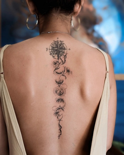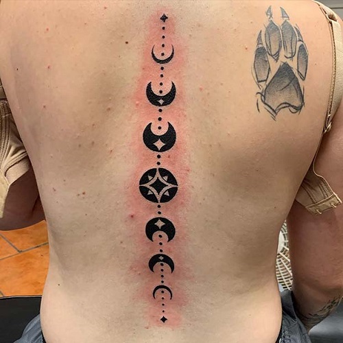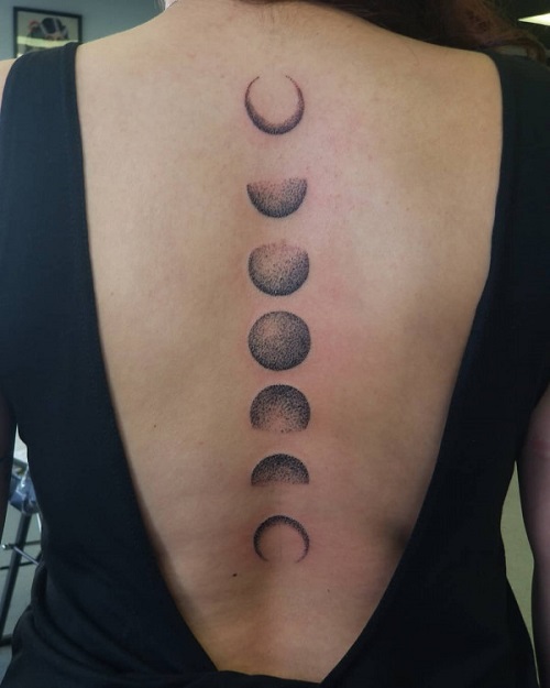 6. Moon Phases Spine Tattoo