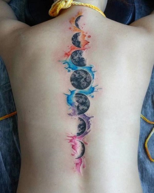 16. Phases Of The Moon Tattoo Spine