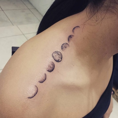 An elegant choice for your moon phases tattoo design is to put it on your shoulders—a great idea if you like wearing off-the-shoulder tops.