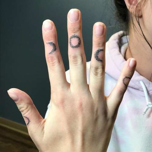 Why leave your hands blank when you can give them a touch of ink? Here’s a small design idea of moon phases for your fingers.
